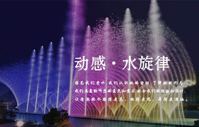 云南龍諾噴泉 — 專業(yè)打造融入地方特色的創(chuàng)意水景噴泉設(shè)計工程,主要從事園林景觀工程、大型水秀水景工程、昆明音樂噴泉工程、程控噴泉工程、冷霧造景、水幕電影、數(shù)碼水簾、環(huán)保工程、燈光亮化工程的設(shè)計與施工。始終堅持質(zhì)量為先的工程理念,提供全方位的服務(wù)支撐,堅持做充滿藝術(shù)觀感的高品質(zhì)噴泉水景。